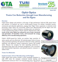 Ophir Optics worked with the state’s Office of Technical Assistance (OTA) engineers to find ways to reduce its use of volatile organic chemicals and generation of hazardous waste. The company also received a demonstration grant from the Toxics Use Reduction Institute (TURI) to share their accomplishments with other Massachusetts companies.