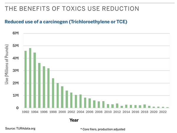 Toxics Use Reduction focuses on minimizing risks to workers, families and communities by avoiding the use of hazardous substances at the source. First developed in Massachusetts, Toxics Use Reduction has served as a gold standard for efforts to prevent pollution and protect workers.